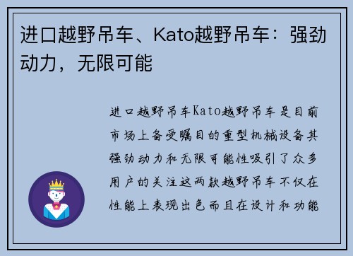 在如今快节奏的社会中,吊车作为一种重要的工程机械设备,在建筑、物流、运输等领域扮演着不可或缺的角色。而在购买和出售吊车的过程中,选择一个高效、可靠的交易平台显得尤为重要。黑龙江二手吊车网作为这样一个平台,为用户提供了便捷、安全的交易环境,让买卖双方都能得到满意的交易体验。九ۣ...